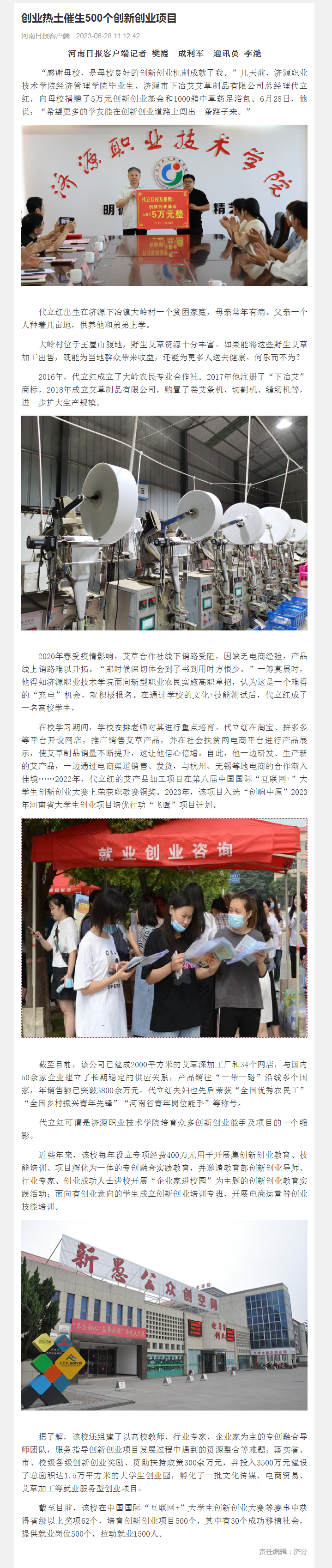 河南日报客户端: 创业热土催生500个创新创业项目