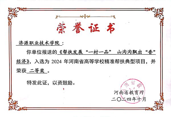 近期,2024年河南省高等学校精准帮扶典型项目推选结果公布,我校驻村工作队报送的《帮扶发展“一村一品” 山沟沟飘出“香”经济》,入选为2024年河南省高等学校精准帮扶典型项目,并荣获二等奖。