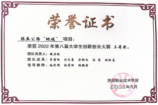 2023年获得河南省“互联网+”大学生创新创业大赛三等奖