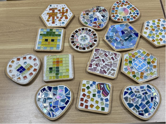 活动中,同学们纷纷化身“生活艺术家”,大胆创新,不拘泥于常规的样式制作出风格迥异、造型独特的各色杯垫。本次马赛克杯垫DIY活动的开展以手工艺艺术疗愈的方式,帮助大家释放压力、缓解焦虑在制作的过程中,同学们共同分享创作的乐趣,互相学习和交流,增进彼此之间的了解和友谊