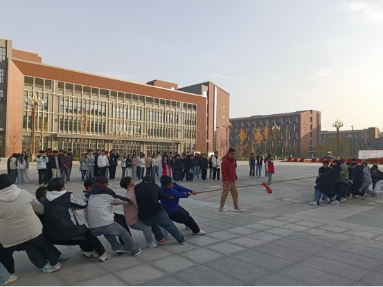 11 11 日,基础部拔河比赛在励志广场热闹开赛。此次比赛以 “聚力量,拔青春” 为主题,12个班级全部参赛,现场氛围热烈。