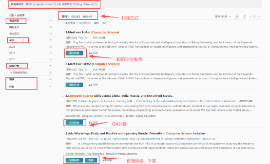 外文文献保障提供基本检索的功能,包括普通检索、高级检索与专业检索。