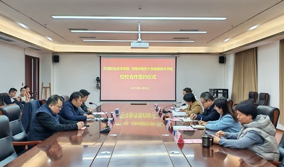 12月5日上午,我校与河南中医药大学信息技术学院校校合作签约仪式在高新校区(东区)综合楼举行。此次合作旨在积极响应国家“健康中国2030”战略和“人工智能+”行动计划,推动中医药与信息技术深度融合,共同培养符合智慧医疗产业发展需求的高素质技术技能人才。