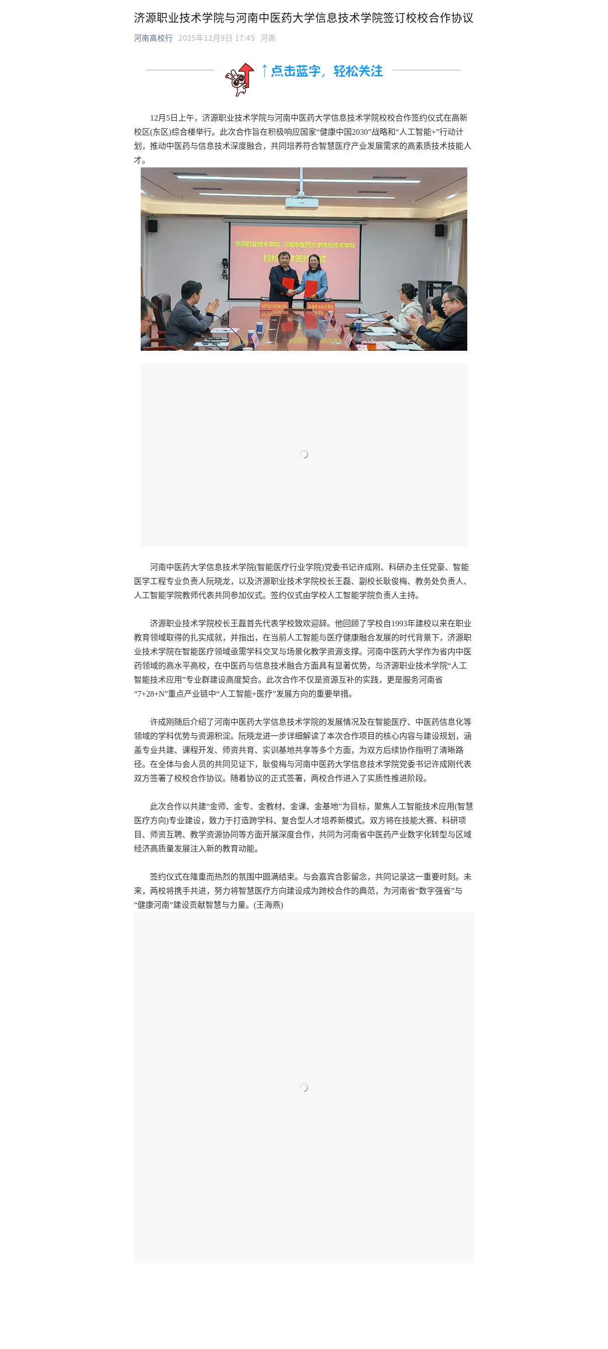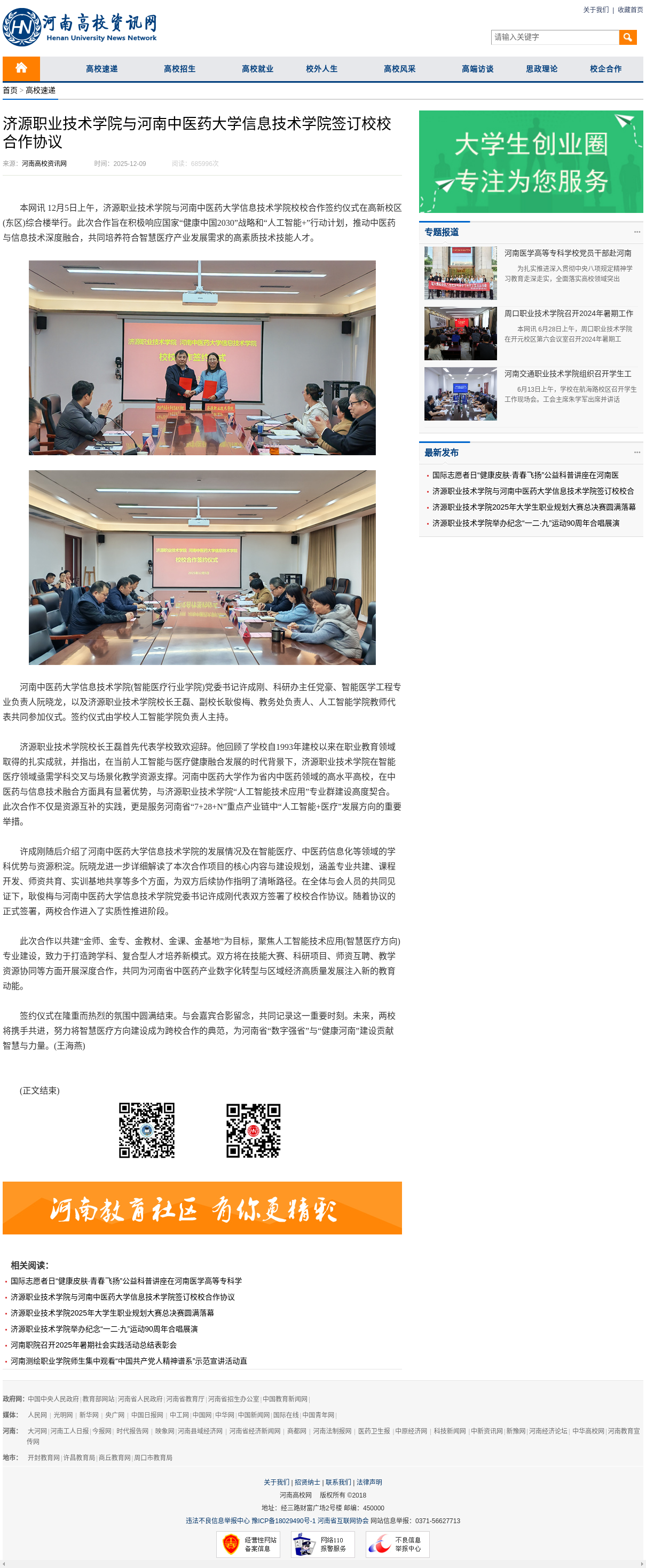 转自2025年12月9日 河南高校资讯网、中华高校网、中新网、河南高校行:济源职业技术学院与河南中医药大学信息技术学院签订校校合作协议