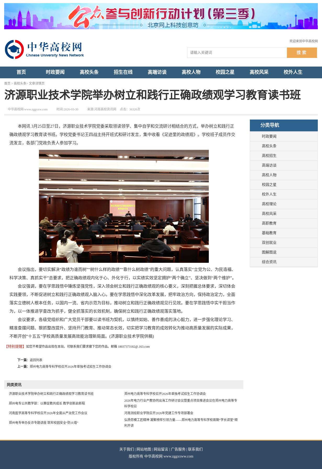转自2026年3月30日 河南高校资讯网、中华高校网、中新网、河南高校行:济源职业技术学院举办树立和践行正确政绩观学习教育读书班