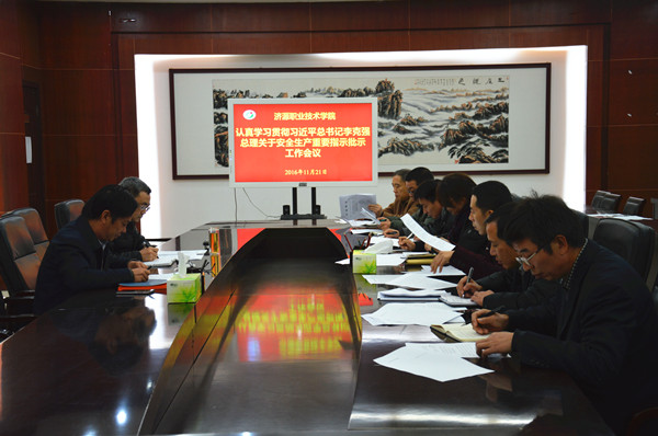 11月21日下午,学院在行政楼八楼会议室召开关于认真学习贯彻习近平总书记李克强总理安全生产重要指示批示精神的工作会议,党委委员贾小平、汤长青,国资处、教务处、学生处、后勤服务中心、实验实训中心、校企合作办公室、保卫处负责人参加了会议。会议由贾小平主持。