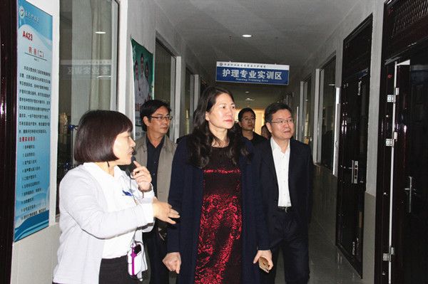 霍金花一行听取了学院工作和盟院合作情况汇报,参观了学院校展室,视察了学院医学护理实训室、航空高铁实训室和茶艺实训室,对学院人才培养和实践条件建设给予充分肯定。在听取盟院合作情况汇报后,她指出,盟院合作是民盟组织服务基层、助力教育的重要平台和和有效载体,济源职业技术学院是盟院合作的第二家单位,合作时间虽然不长,但发展很快,势头很好,双方在医学护理类专业建设、课程设置、师资培训、科学研究、社会服务等方面深入合作,取得了显著的效果,超出了她的想象。她要求,盟院双方要高标准的打造盟院合作项目,民盟河南省委将全力支持盟院合作,努力把盟院合作真正办出特色、办成品牌。