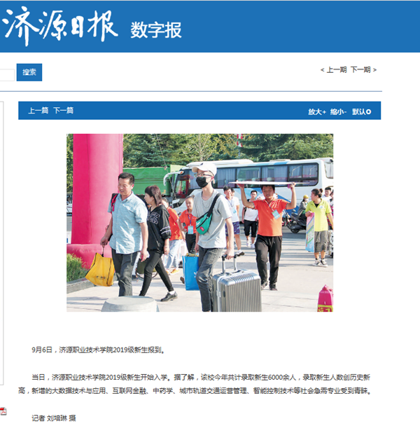 当日,济源职业技术学院2019级新生开始入学。据了解,该校今年共计录取新生6000余人,录取新生人数创历史新高,新增的大数据技术与应用、互联网金融、中药学、城市轨道交通运营管理、智能控制技术等社会急需专业受到青睐。