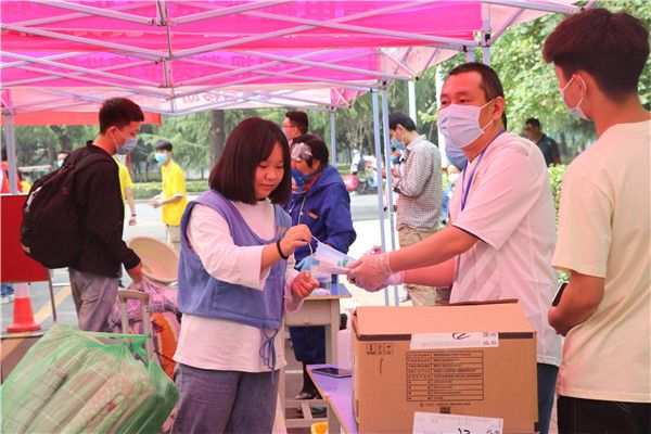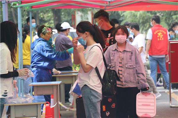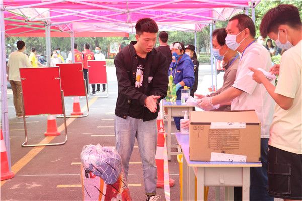 学院各校区报到现场秩序井然,返校学生经扫码验证、行李消毒、更换口罩、体温检测、信息登记等环节后进入校园。老师和工作人员、志愿者维护交通秩序、扫码测温、登记信息、帮助学生搬运大件行李,欢迎学生安全顺利返校。