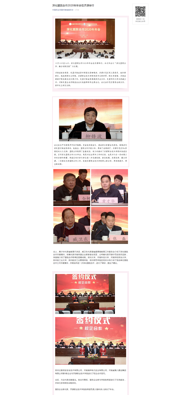 12月15日至16日,深化盟院合作2020年年会在济源举行。本次年会以“深化盟院合作、融合创新发展”为主题。
