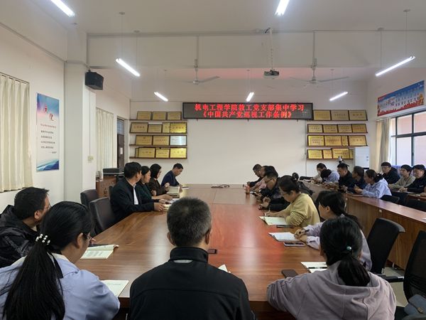 10月24日下午,机电工程学院在机电楼336会议室召开全体党员大会,组织学习《中国共产党巡视工作条例》(以下简称《条例》),校党委副书记王向军参加并作了学习教育辅导。