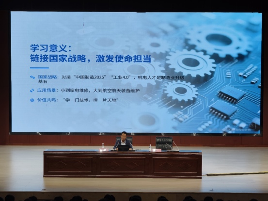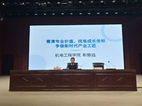 9月27日下午,机电工程学院举办了2025级新生专业认知介绍与职业规划讲座——看清专业价值,找准成长坐标,争做新时代产业工匠,由机电工程学院副院长和振远主讲,机电工程学院全体辅导员及2025级新生参与学习。