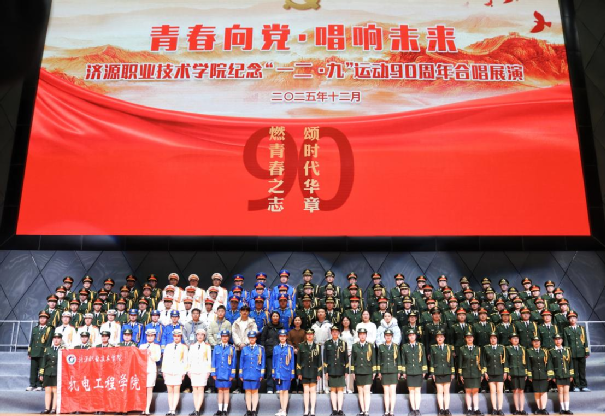 12月4日,机电工程学院学子亮相学校举办的“一二·九”运动90周年合唱展演,以“青春向党 唱响未来”为主题,在红色旋律中传承爱国薪火,彰显青年担当。