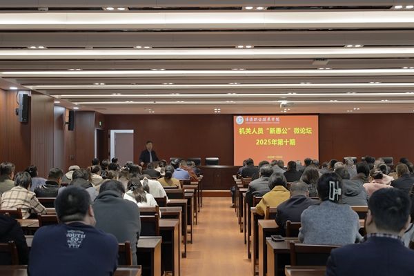 11月5日,2025年第十期机关人员“新愚公”微论坛在高新校区(东区)综合楼举行。党委书记王四战、校长王磊等班子成员,全体党政教辅部门工作人员和二级学院党政负责人参加。活动由党政办公室主任周林海主持。