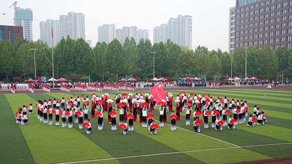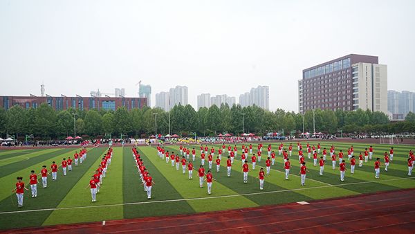 春风有信,万物并秀。黄河北岸,晴空万里。4月16日,学校2026年体育文化节暨第二十五届春季田径运动会开幕式在高新校区操场隆重开幕。校领导王磊、耿俊梅、赵艳、张研、姜小军,全体教师及学生参加开幕式。校长王磊致开幕辞并宣布运动会开幕。党委委员、宣传部部长姜小军主持开幕式。