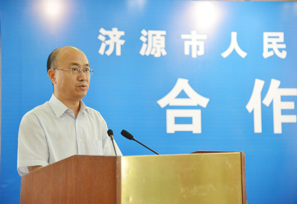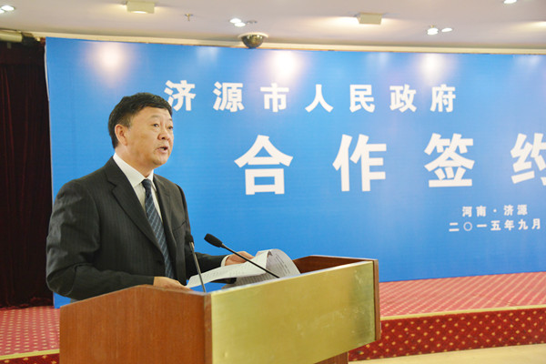 郑州轻工业学院党委书记石恒真在签约仪式上讲话。他简要介绍了郑州轻工业学院的基本情况,对合作发展充满信心。他说,近年来,济源市委、市政府在省委、省政府的正确领导下,坚持以加快转变经济发展方式为主线,在发展中调整、在发展中转变、在发展中提升、在发展中增效,持续探索三化协调、四化同步、科学发展的新路子,经济社会发展实现历史性跨越,全市生产总值和规模以上工业增加值增长幅度位居省内地市前列,已形成钢铁、铅锌、能源、化工、装备制造、电子信息等支柱产业,成为全国最大的铅锌基地和河南省重要的钢铁、能源、化工、机械制造基地。济源市的产业结构与郑州轻工业学院学科专业结构契合度很高,双方具有广阔的合作空间和发展前景。他表示,市校合作协议的签订,将是载入郑州轻工业学院发展史册的一件具有里程碑意义的大事。学院将以此为契机,与济源市政府紧密协作,统筹管理,全面加强人才培养、科学研究、社会服务,朝着共同的目标,努力建设好郑州轻工业学院(济源)科教园区,使之成为一座新的学术重镇、人才摇篮、创新引擎、服务智库,文化源泉,为济源人民造福,为济源发展助力,为中原崛起、河南振兴添砖加瓦。