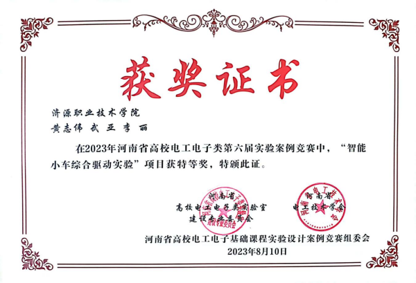 近日,河南省高校电工电子类第六届实验案例竞赛获奖名单公布,我校汽车工程学院教师黄志伟的参赛作品《智能小车综合驱动实验》荣获特等奖,我校还获得三等奖两项、优秀奖一项。该项赛事由河南省电工技术学会主办,为本专科院校同台竞技,共有139个项目参赛。