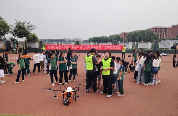 活动现场,科技服务队的同学们将中国优秀传统文化与现代科技融会贯通,把端午节传统习俗与无人机科技创新有机融合,向孩子们科普无人机的分类、发展历史、应用场景、飞控知识,耐心解答小学生们的奇思妙想,与小学生们展开了热烈的互动。