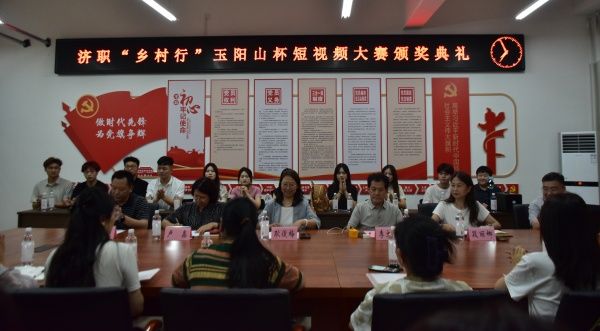 6月17日,“济职乡村行—玉阳山杯短视频大赛”颁奖典礼在济源职业技术学院高新校区护理楼308举行,共计30余名学生获奖,历时一个月的短视频大赛圆满落幕。副校长耿俊梅、济源市鸿润苗木科技李文战总经理出席活动并讲话,济源市君墨科技沈硕总监对入选视频进行点评。经济管理学院、医学护理学院负责人参加典礼。