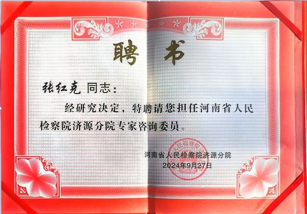 近日,我校马克思主义学院教师张红克被河南省人民检察院济源分院聘为专家咨询委员。