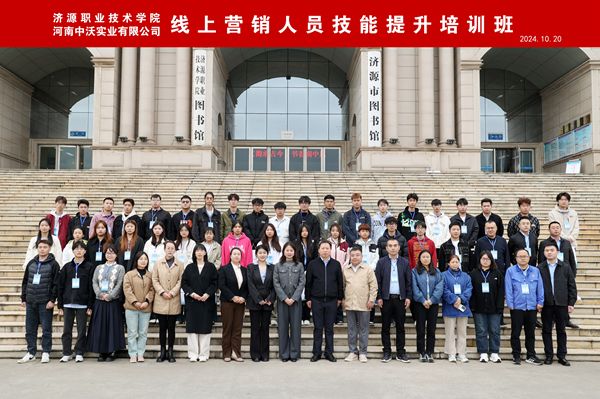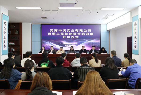 10月20日上午,济源职业技术学院经济管理学院携手河南中沃实业有限公司在济源市图书馆三楼报告厅隆重举行“线上营销人员技能提升培训班”的开班仪式。河南中沃实业有限公司市场部经理杨军、销售经理杨鹏超,济源市君墨科技有限公司总经理张志衡、技术总监吴雯娟、经济管理学院负责人和济源发展研究院、济源电子商务研究所相关人员、50余名参训学员共同参加开班仪式。