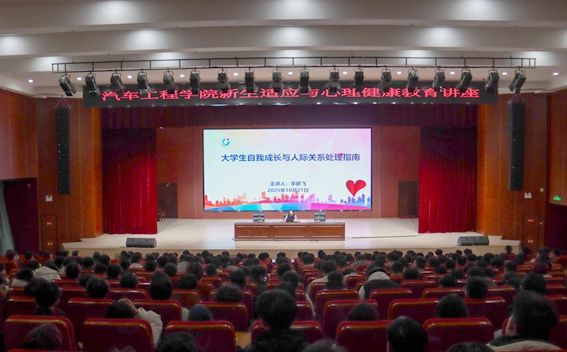 10月21日,汽车工程学院在高新校区(西区)大学生文体活动中心报告厅举行“检修心灵‘仪表盘’护航成长‘平安行’”主题讲座。2025级全体新生及班主任、辅导员参会。