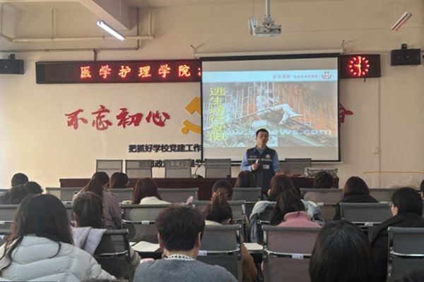 1月8日下午,医学护理学院联合学校保卫处在高新校区(西区)护理楼开展消防安全知识培训讲座,特邀济源市宣安消防科技有限公司特级宣讲师杨新涛为全院教职工指导培训。