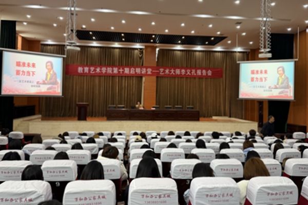 3月19日,教育艺术学院举办第十期“启明讲堂”报告会,邀请李义孔作专题报告,学院300余名师生到场聆听。此次报告会以“瞄准未来,蓄力当下——在艺术赛道上如何领跑”为主题,紧扣青年学生成长成才与艺术实践发展,内容丰富、思想深刻。