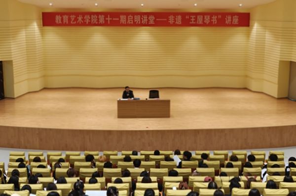 3月26日,教育艺术学院第十一期“启明讲堂”顺利开讲。本次活动由济源市音乐家协会副主席、教育艺术学院青年教师王萌主持,特邀非遗传承专家李亚文先生作专题分享,学院300余名师生到场聆听。