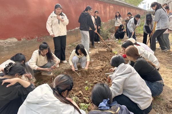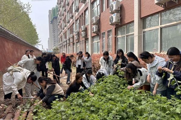 4月7日下午,医学护理学院杏林康养社团与济源市浴七彩健康养生有限公司在校内种植基地联合开展艾草种植实践活动。