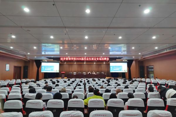 4月21日,经济管理学院在我校沁园校区实训楼B楼二楼报告厅举办2026届毕业生专场招聘宣讲会。活动邀请郑州丹尼斯百货有限公司、济源珈一电子商务有限公司、郑州巨木服饰有限公司、上海鸽捷供应链科技有限公司、尊锐(南通)电子商务有限公司等五家优质企业联合宣讲,经济管理学院2026届百余名校内毕业生到场参会。