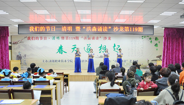 4月1号晚,济源社区大学在电大六楼录播大厅举办“我们的节日·清明”暨119期“洪森诵读”沙龙诗会。