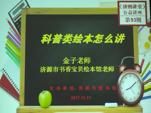 11月11日下午,图书馆《济图讲堂》在三楼报告厅举办《科普类绘本怎么讲》绘本阅读推广公益讲座。共有50余人前来聆听,此次讲座系妈妈绘本精品课第十讲,讲座嘉宾金子老师是济源市书香宝贝绘本馆老师。