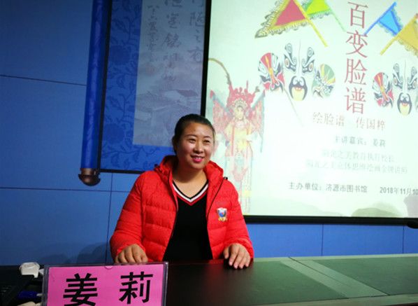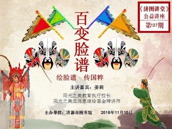 11月10日,图书馆在三楼报告厅举办《济图讲堂》第127期》“百变脸谱——绘脸谱,传国粹” 亲子手工制作讲座,济源市阳光之美教育执行校长、阳光之美立体思维绘画金牌讲师姜莉老师担任主讲嘉宾,共有70余人参加讲座。