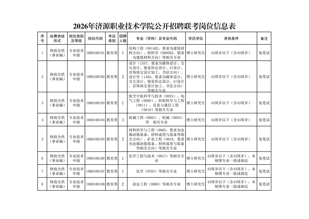 请查阅:《2026年河南省济源示范区事业单位公开招聘联考工作的公告》