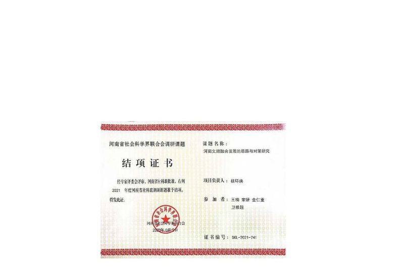 2021.8-河南文旅融合发展的思路与对策研究--厅级课题(杨环焕)