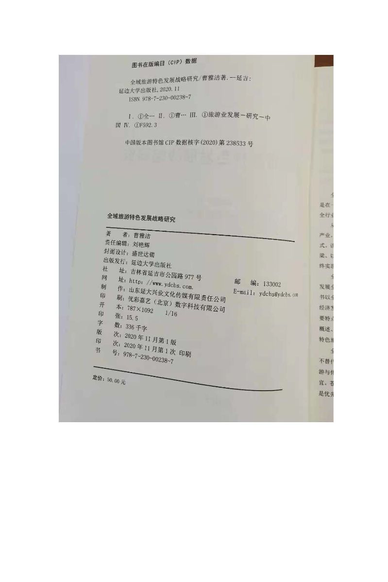 专著:全域旅游特色发展战略研究--韩静怡