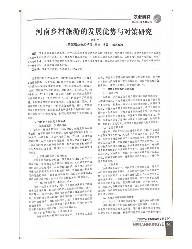 2020.3-河南农业-河南乡村旅游的发展优势与对策研究