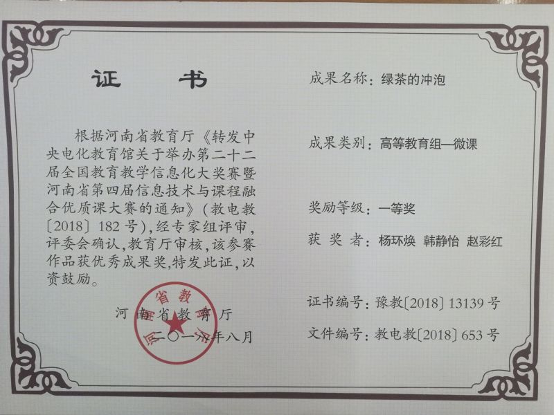 2018绿茶的冲泡一等奖--杨环焕