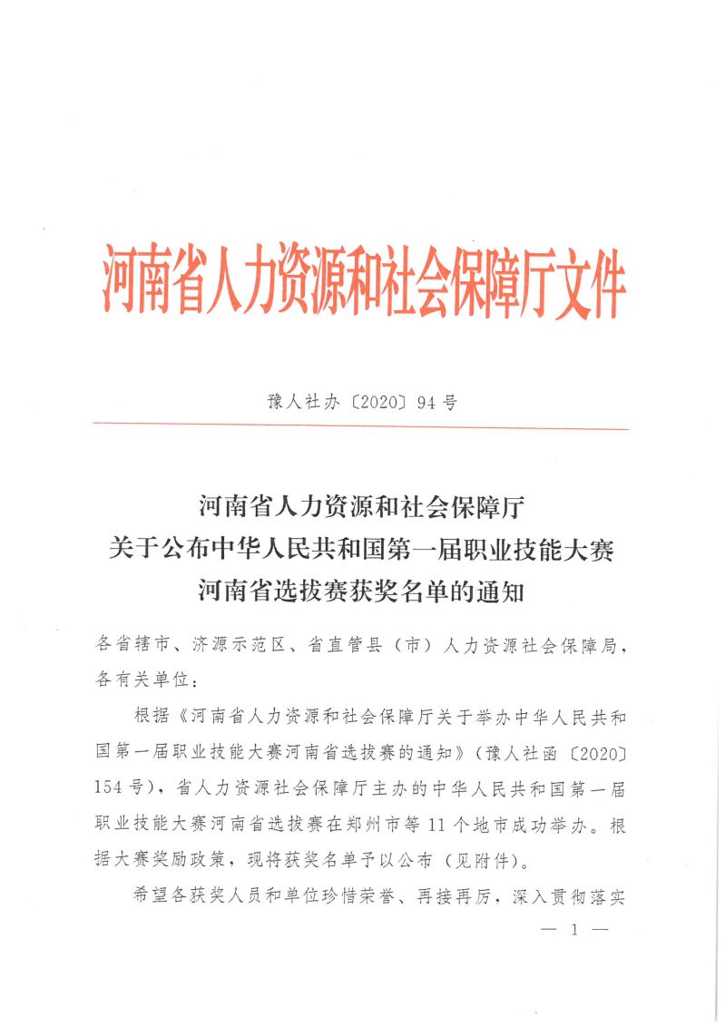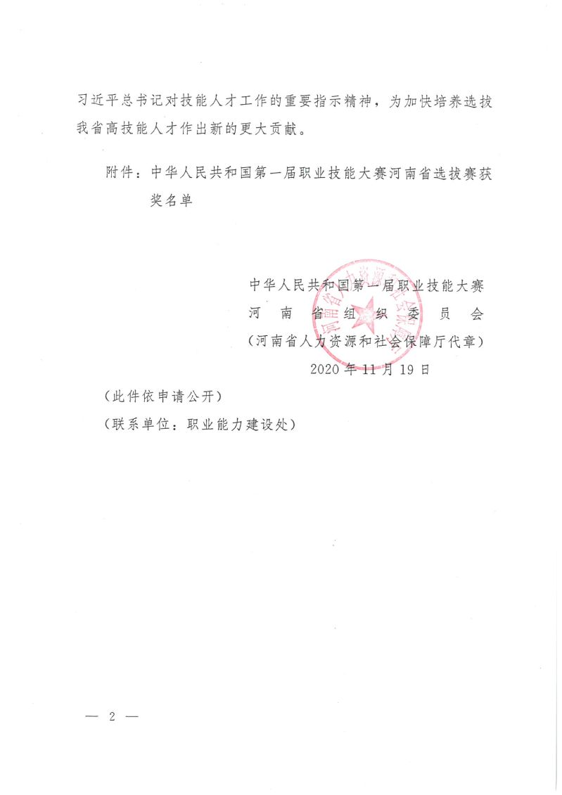 2020.11--第一届全国技能大赛省选拔赛获奖通知-餐厅服务--二等奖