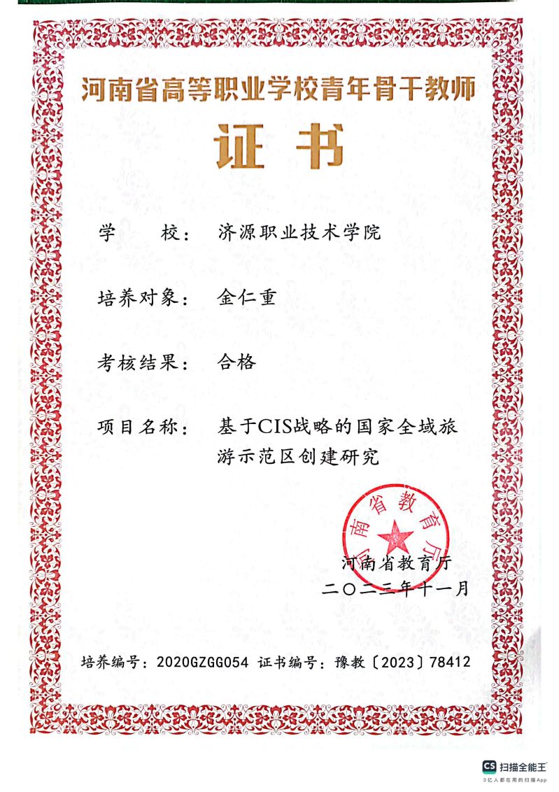 省级青年骨干教师 --教育厅(金仁重)