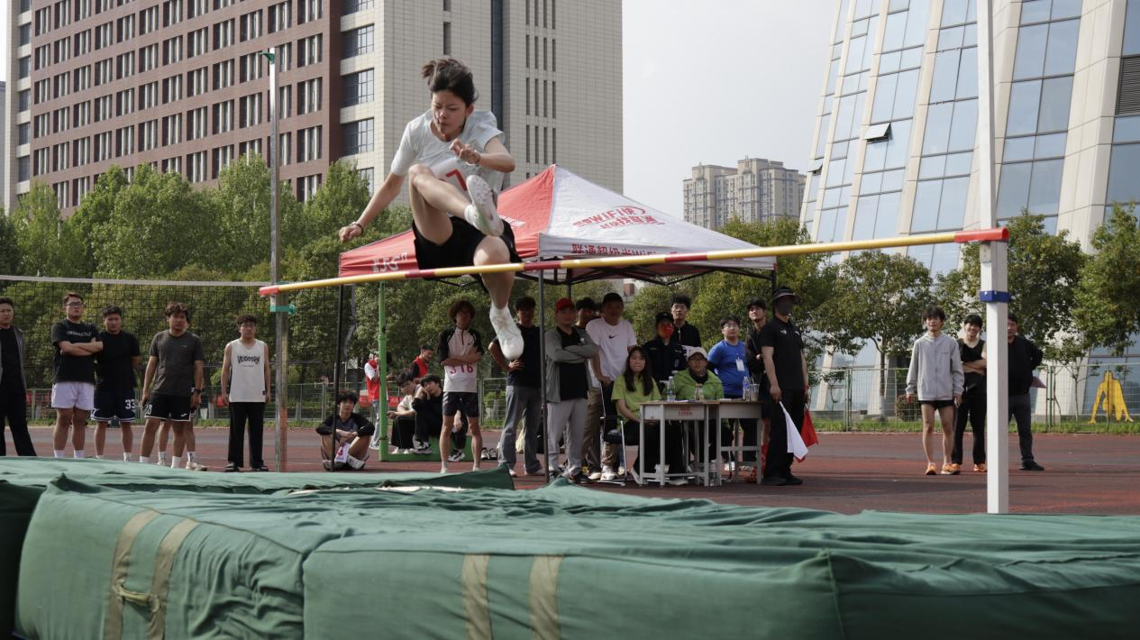 赛场上,气氛热烈紧张。随着横杆高度不断提升,竞争愈发激烈,多名选手相继止步。崔润佳始终沉着冷静,从容应对每一次挑战。助跑、起跳、腾空、过杆,一系列动作行云流水、一气呵成,每一次成功跃过横杆,都引来现场观众的阵阵欢呼与掌声。面对原有校纪录,她毫不畏惧、勇于挑战,在关键高度上顶住压力,一次次突破极限,最终凭借出色的身体素质、稳定的心理素质和娴熟的技术动作,奋力拼搏、突破自我,以1.35米的优异成绩,打破学校女子跳高1.33米的校纪录,斩获该项目第一名。