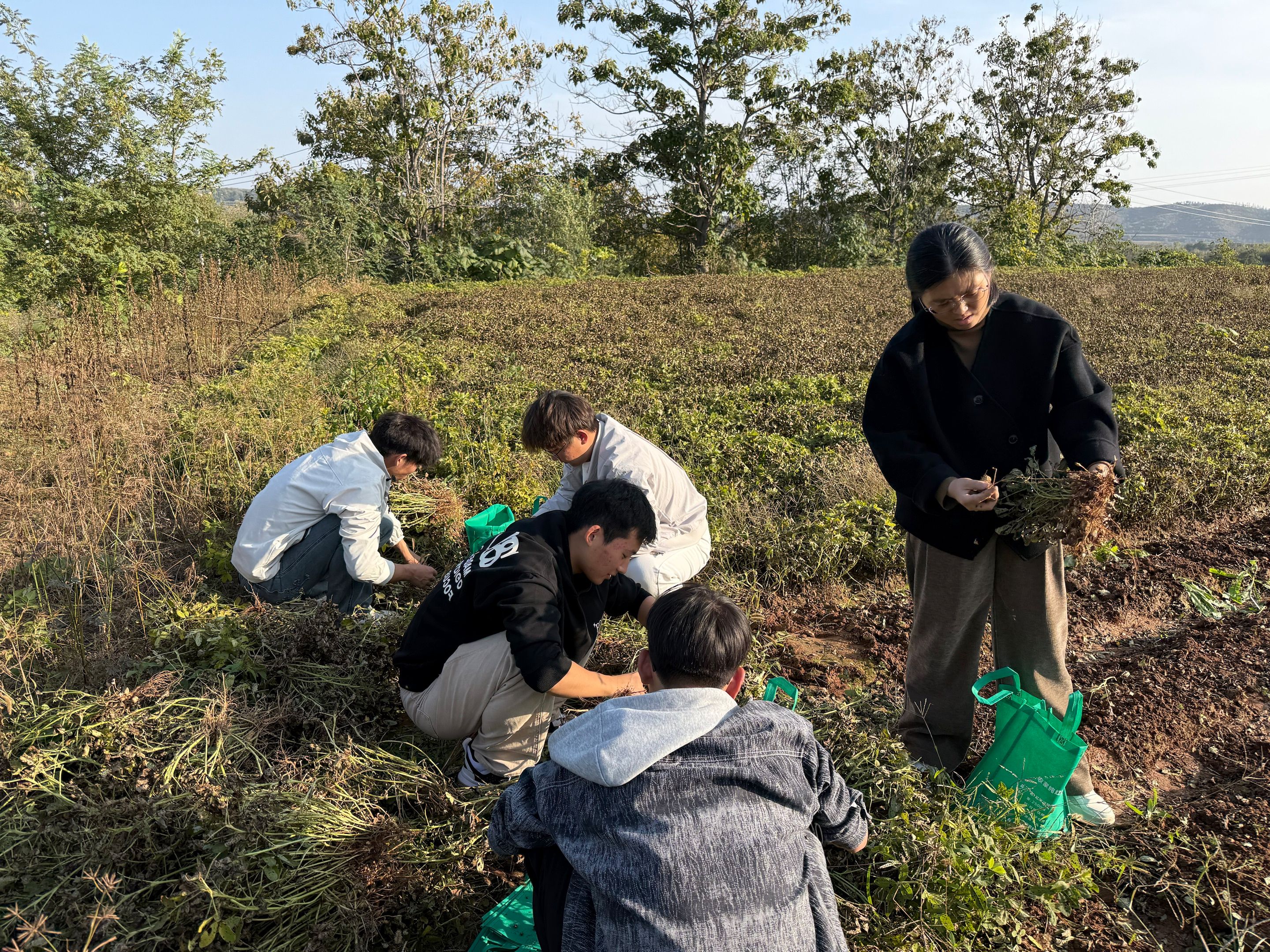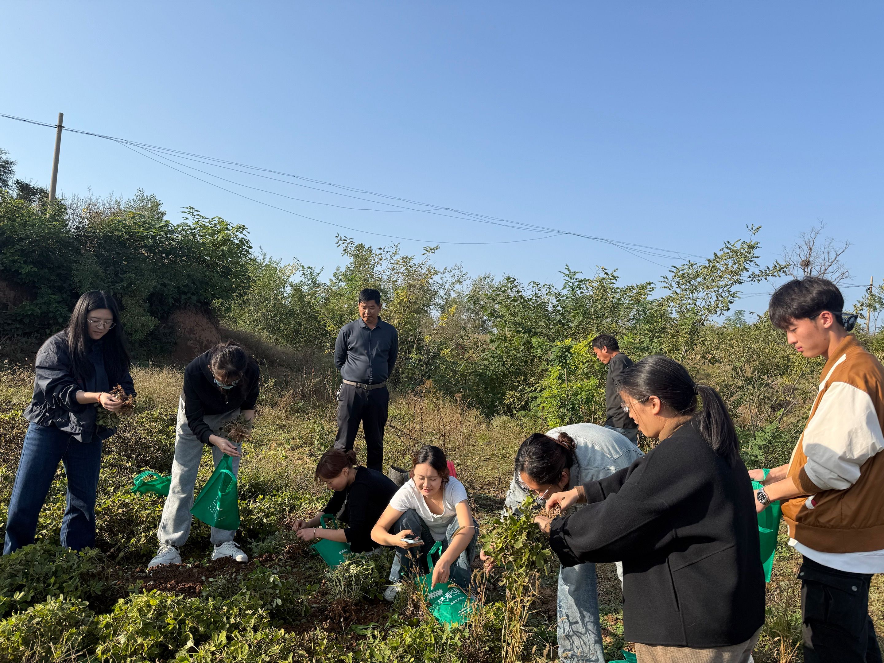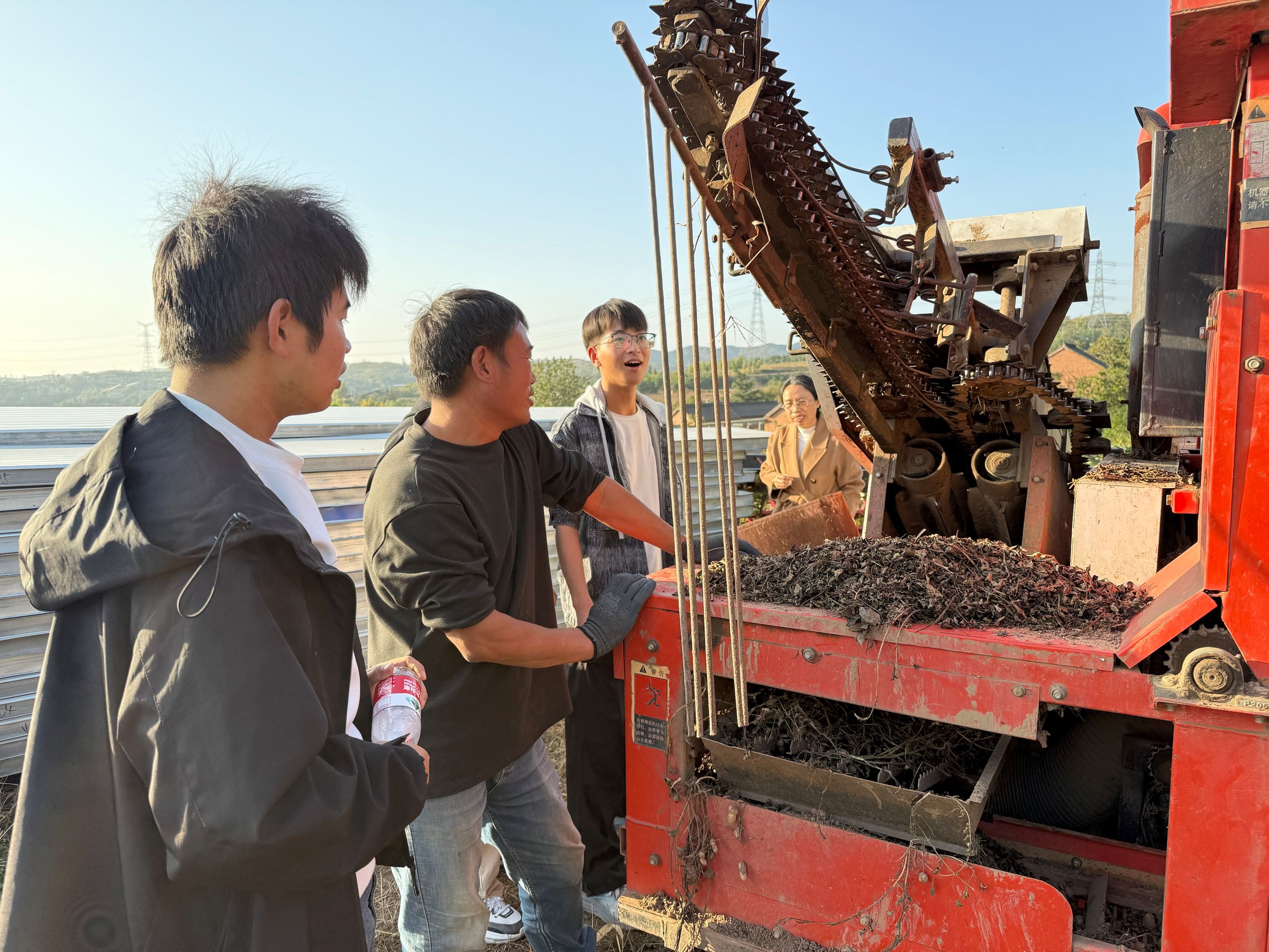 走出村史馆,师生们拿起农具,走进田野。起初,不少同学的动作还略显生疏,但在村民的指导下,很快掌握了要领。弯腰、除草、松土......汗水顺着脸颊滑落,泥土沾满了鞋裤,但笑容却愈发灿烂。