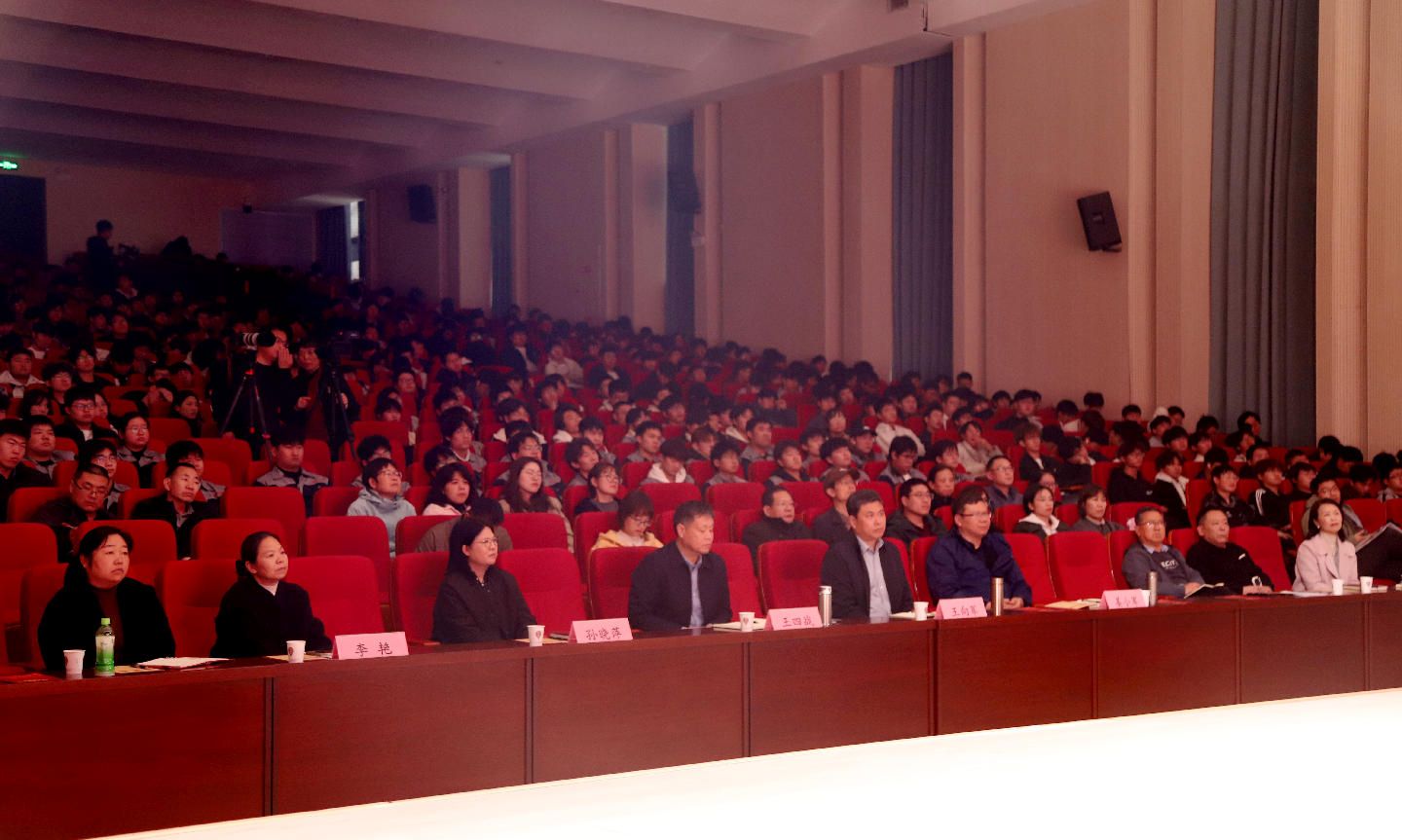 2025年11月6日下午,济源职业技术学院在高新校区西区文体中心千人报告厅举行“豫光工匠进济职”大思政课活动。学校党委书记王四战、党委副书记王向军、党委委员 宣传部部长姜小军、以及相关部门负责人,豫光集团文化总监孙晓萍、宣传部部长李艳等企业代表,马克思主义学院全体教师、豫光学院全体师生、材料工程学院一年级学生、机电工程学院机电专业学生,以及济源大中小学思政课一体化虚拟教研室成员共同参加了此次活动。