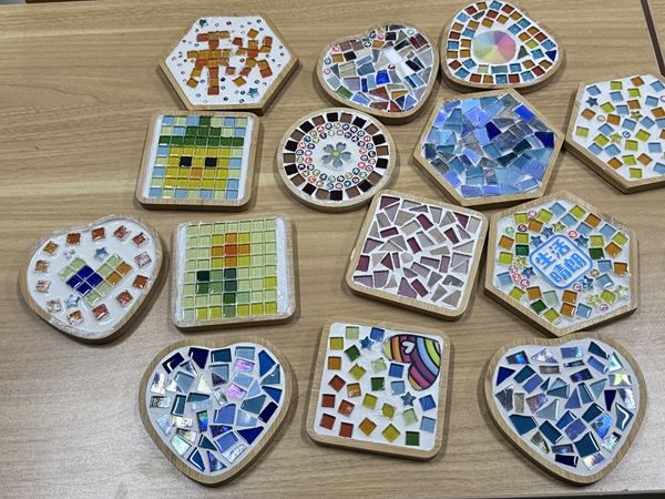 活动现场,学生们充分发挥创意,运用马赛克材料制作出造型各异的个性化杯垫。该活动通过手工艺创作实现艺术疗愈效果,有效帮助参与者缓解压力与焦虑情绪。