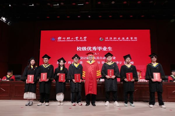 仪式在雄壮的国歌声中拉开帷幕。郑州轻工业大学合作办学管理处相关负责人宣读了关于授予2025届本科毕业生学士学位的决定和校级优秀毕业设计(论文)获奖名单;济源职业技术学院副校长耿俊梅宣读省级优秀毕业生名单、郑州轻工业大学优秀毕业生名单。