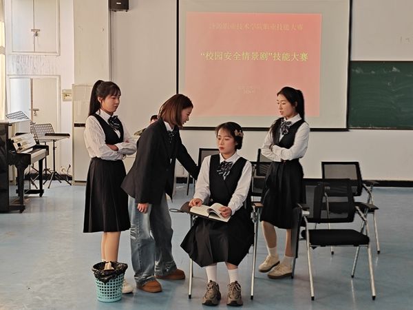 为了更好的推进素质教育,丰富校园文化生活,展现校园文化风采,教育艺术学院于2024年12月5日在实训B楼807举行了“校园安全情景剧”技能大赛。