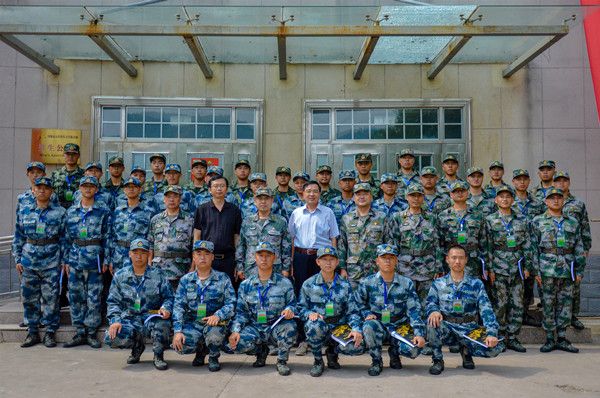 看望结束后,市人武部副部长杨华冰、政工科科长孔冰,我院副院长张大林、武装部部长汪柏华和役前训练的学生合影留念。