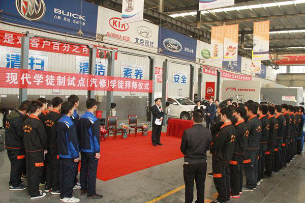 济源职业技术学院汽车检测与维修技术专业2016年开始进行学徒制试点,2017年成功立项国家第二批现代学徒制试点单位,先后与“人和车行”“济源威佳”“济源四通”等单位进行试点合作,与合作企业共同进行“校企合作、双主体育人”工作。