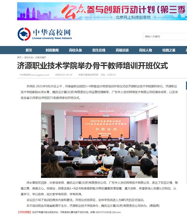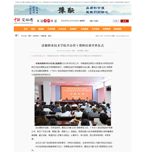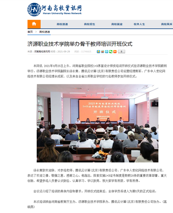 本次培训班由河南省教育厅主办,济源职业技术学院承办,腾讯云计算(北京)有限责任公司协办。(高晓燕)
